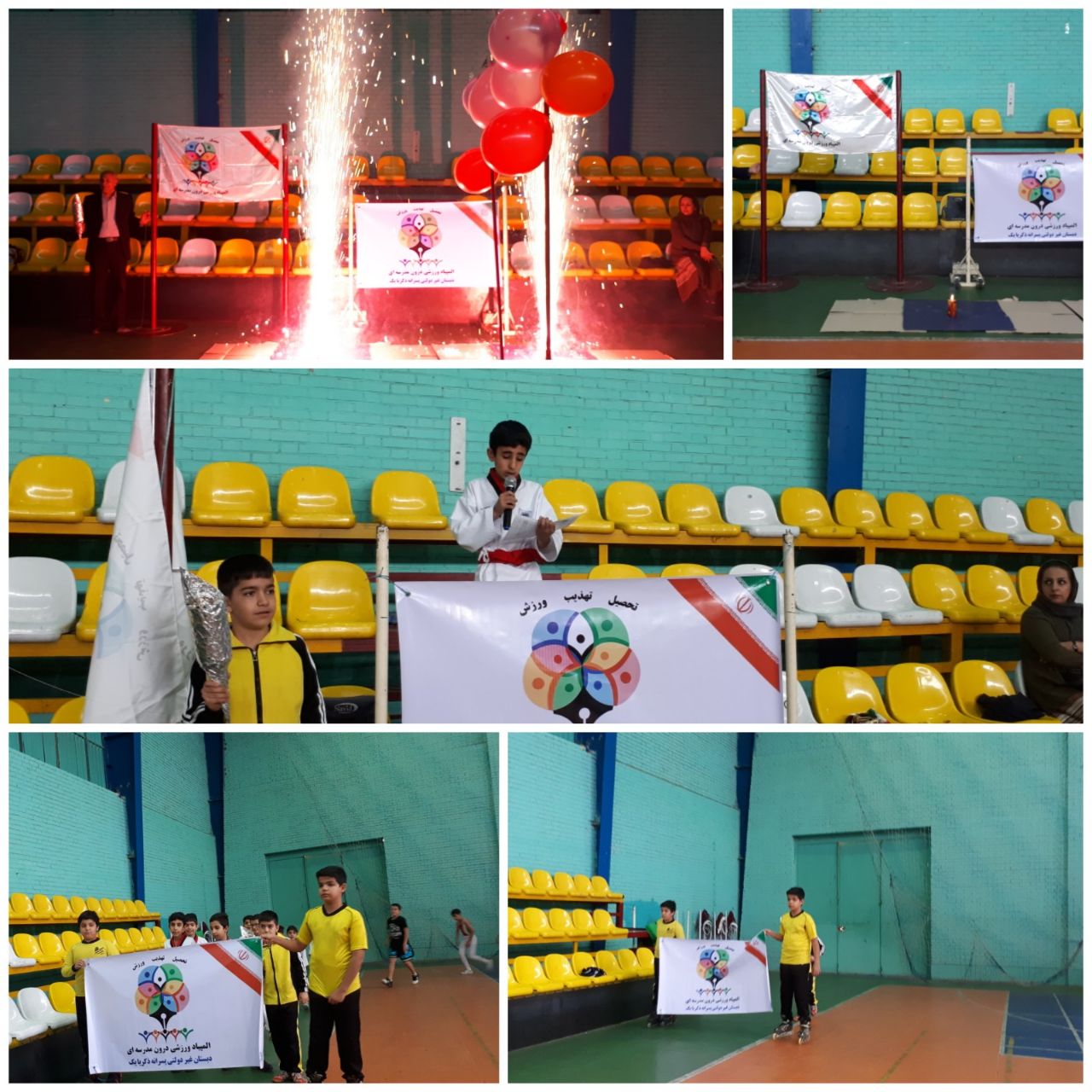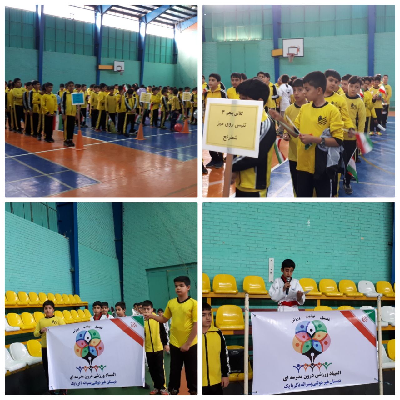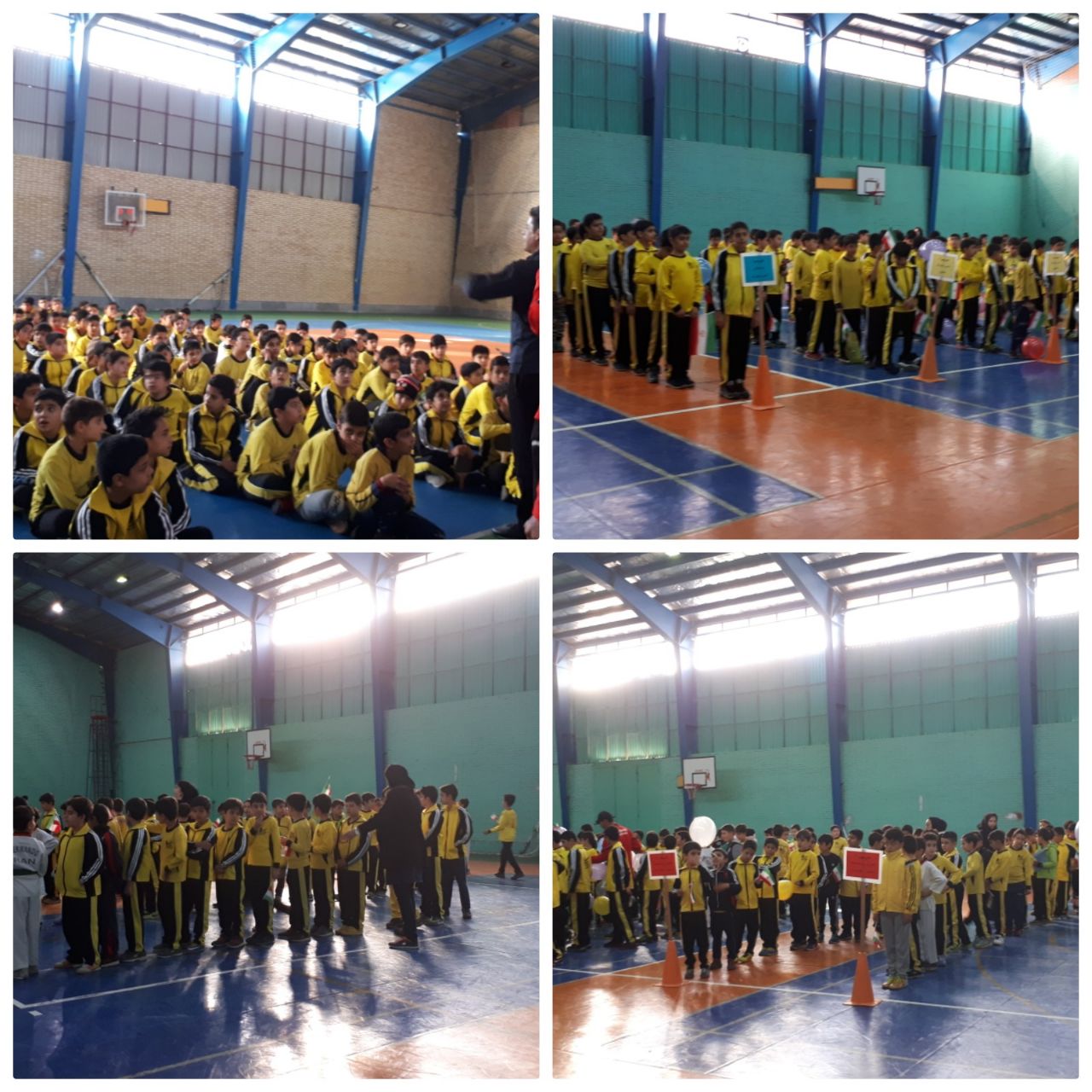 مراسم افتتاحیه المپیاد ورزشی و حضور کلیه ی دانش آموزان به همراه پرسنل دبستان